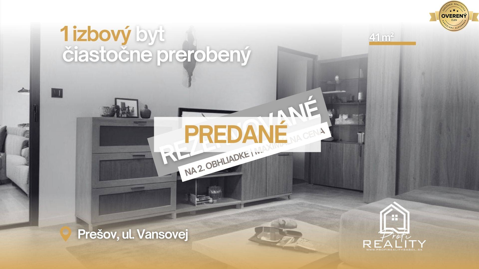 PREDANÝ | 1 izbový byt, 41 m², 2/8 p., Vansovej, Prešov