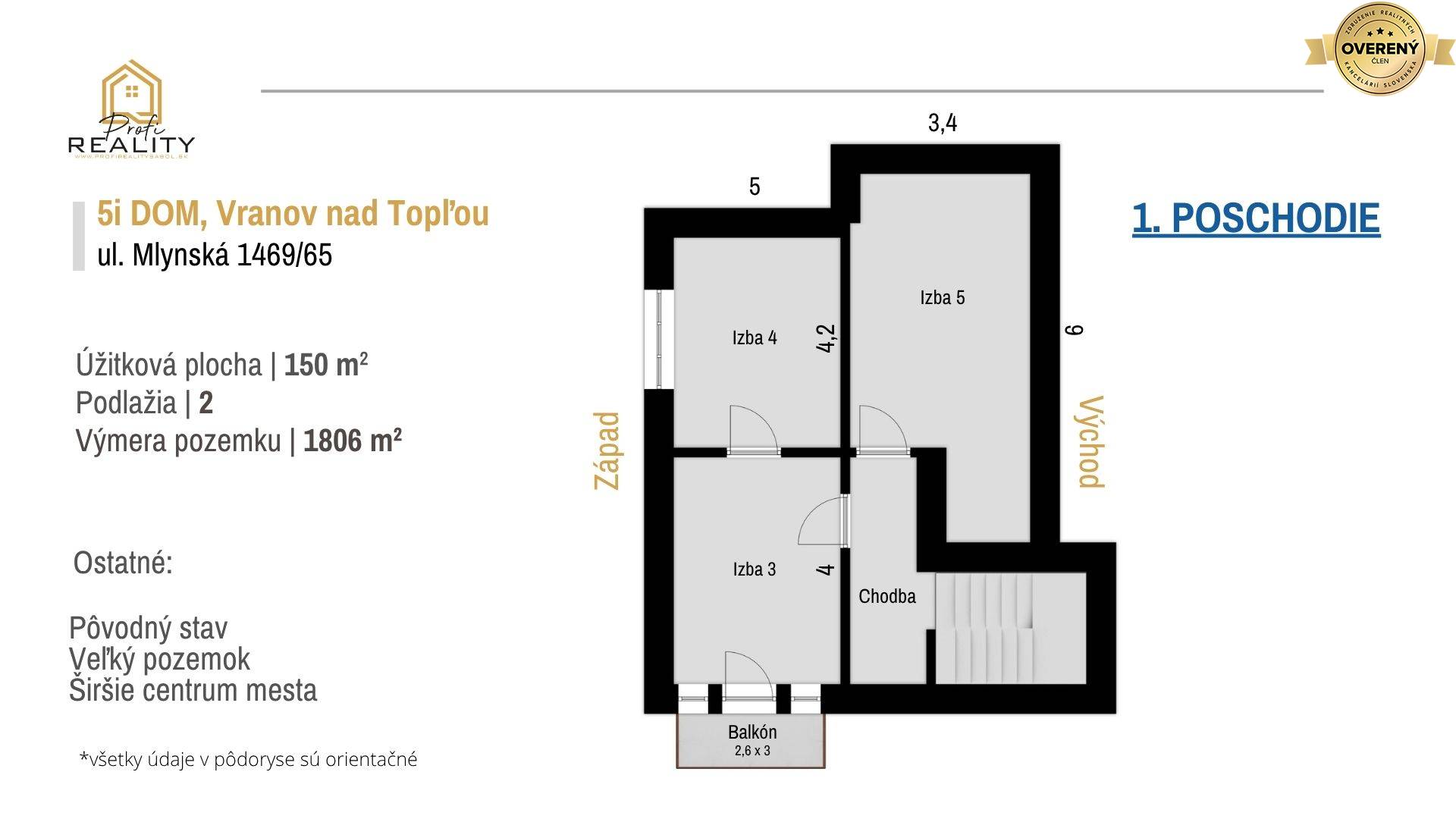 NA PREDAJ 5i RODINNÝ DOM s POZEMKOM 1806 m² - Vranov n/T, Mlynská ul.