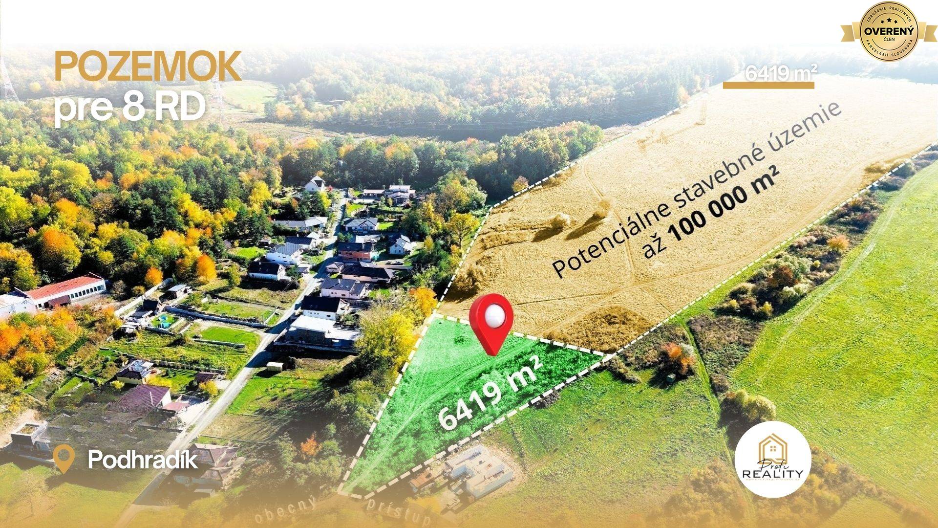PREDAJ | Pozemok pre 8 RD - Podhradík | 6419 m² | Okamžitá výstavba