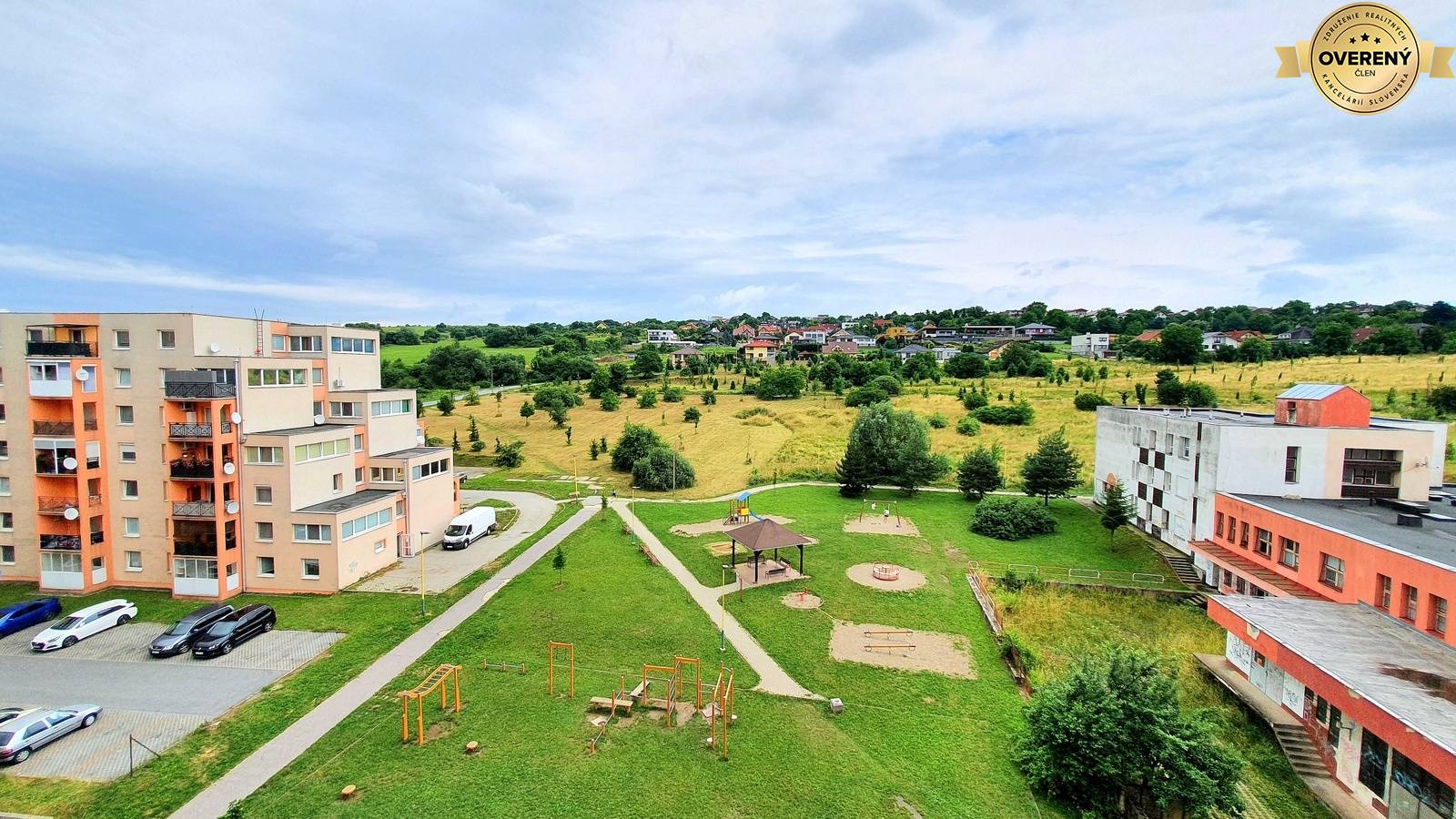 Byt sa nachádza v poslednom rade bytových domov, za ním už len výhľad z obývačky na zeleň, rodinné domy, detské ihriská. Samozrejmosťou je kvalitná, komfortná a kompletná občianska vybavenosť tvorená škôlkami, školami, obchodmi a službami. Okolie bytového domu i dom samotný sú pekne udržiavané a obývané dobrými susedmi.