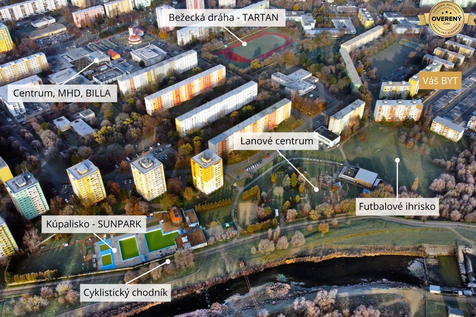 Byt sa nachádza v perfektne občiansky vybavenej lokalite sídliska III v zrekonštruovanom a zateplenom bytovom dome, hneď vedľa lanového centra, či cyklistického chodníka s neďalekou tartanovou bežeckou dráhou, kúpaliskom, fitness centrom ... exteriérovými priestormi pre aktívny relax. V blízkosti je MHD, nákupne centrum ..., či zdravotné stredisko.