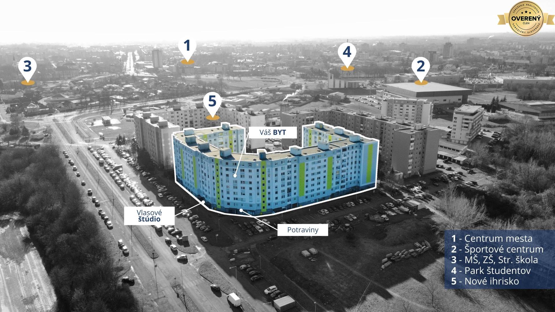 PROFI REALITY SABOL exkluzívne ponúka na predaj 3 izbový byt s nadštandardnou rozlohou 76 m² s priestrannou loggiou a nádherným výhľadom menej než 10 minút od centra na Severnej ulici s viacerými výnimočnými benefitmi.