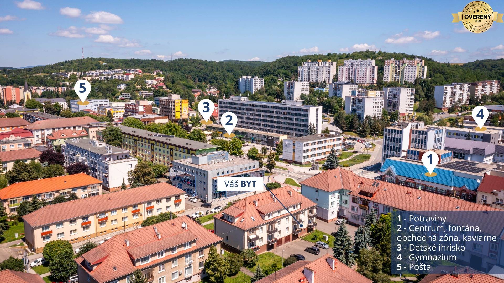 Byt sa nachádza v kompletne občiansky vybavenej lokalite priamo v centre mesta Vranov nad Topľou na Sídlisku I. V blízkom okolí je ZŠ, MŠ, lekári, pošta, potraviny, zastávka MHD, detské ihriská, kaviarne, reštaurácie, obchodné centrá ...