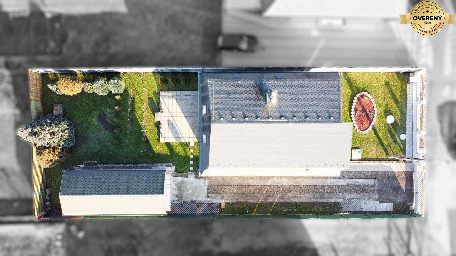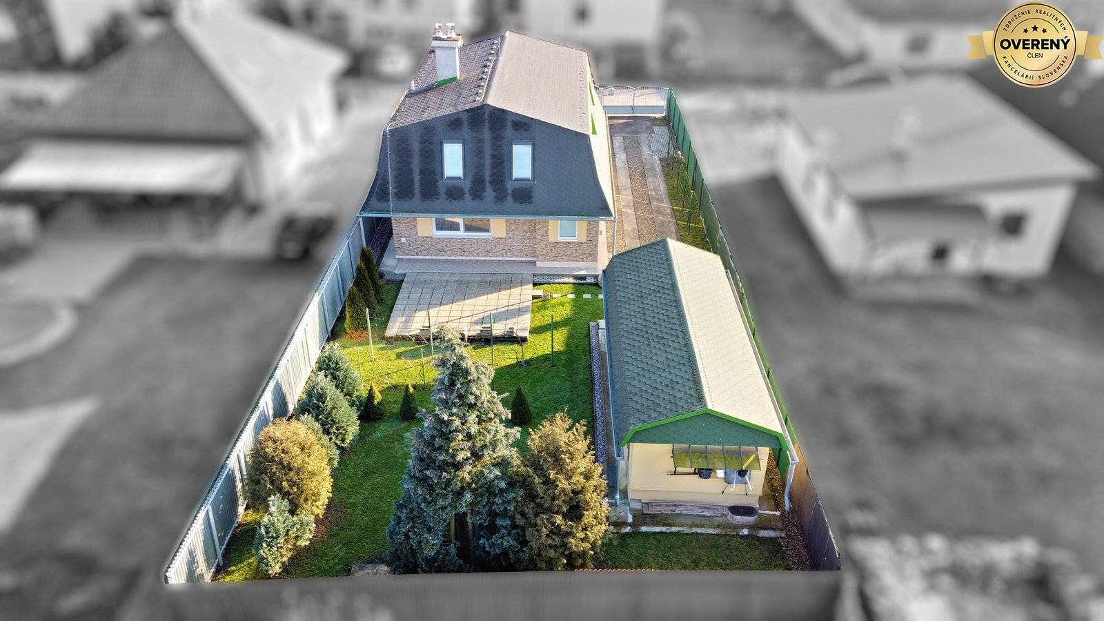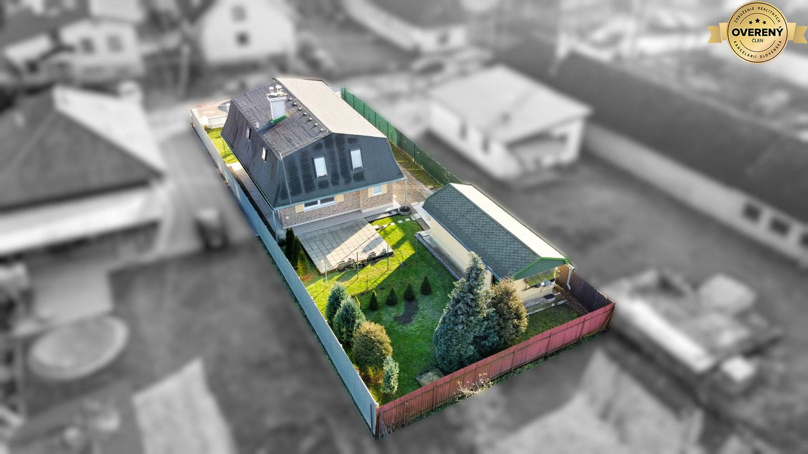 Na rovinatý pozemok o celkovej rozlohe 556 m² vstupujete priamo z ulice. Je dostatočne priestranný s parkovaním pre minimálne 3 osobné autá za sebou a samostatne stojacou murovanou garážou o rozlohe 30 m² s dielňou vzadu. Pozemok je krásne udržiavaný s okrasnými drevinami, viničom, priestrannou záhradou s patiom pre grilovačky a inú záhradnú zábavu. Zároveň disponuje miestom pre trampolínu, bazén, či preliezky to všetko ukryté pred pohľadmi susedov.