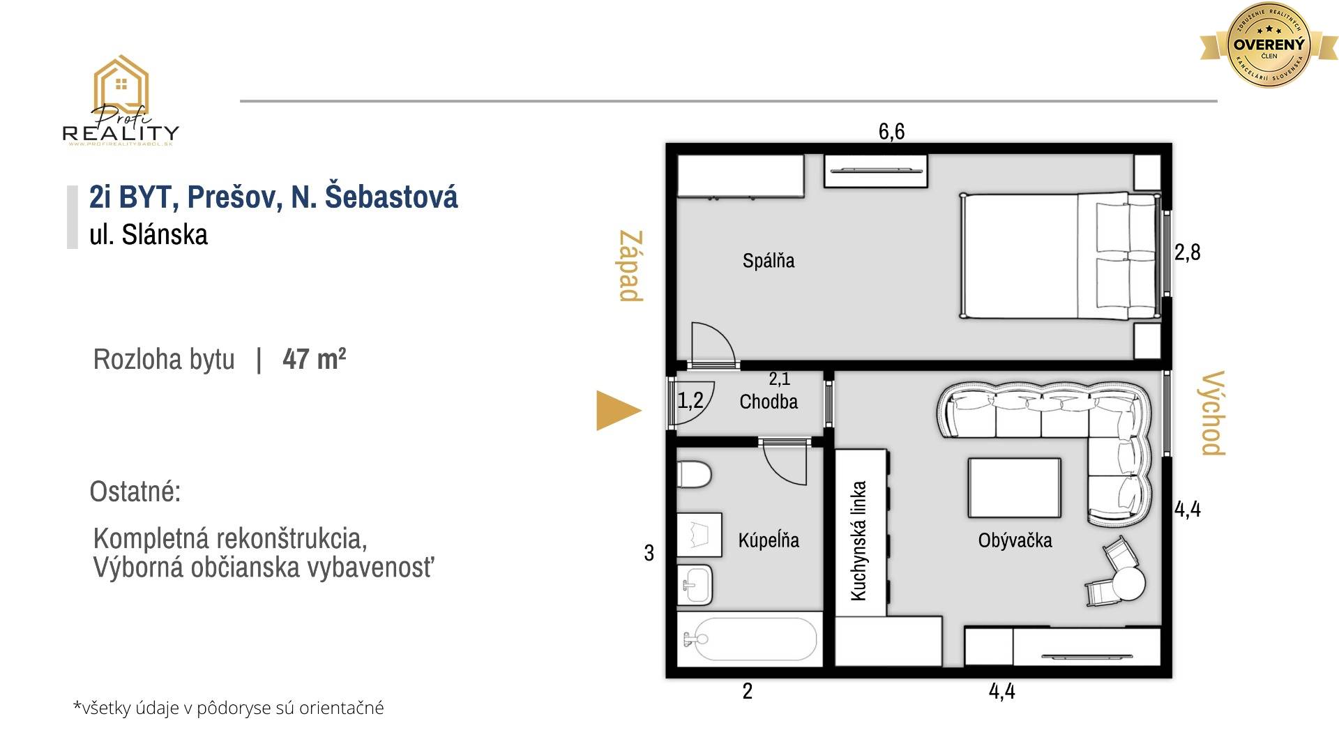 Chcete pre seba alebo svoju rodinu útulné bývanie v novostavbe, s vlastným parkovacím miestom, nízkymi nákladmi, kompletnou občianskou vybavenosťou v mestskej časti Nižná Šebastová a len 5 minút od centra Prešova? Tento 2 – izbový byt je potom určený práve pre Vás.