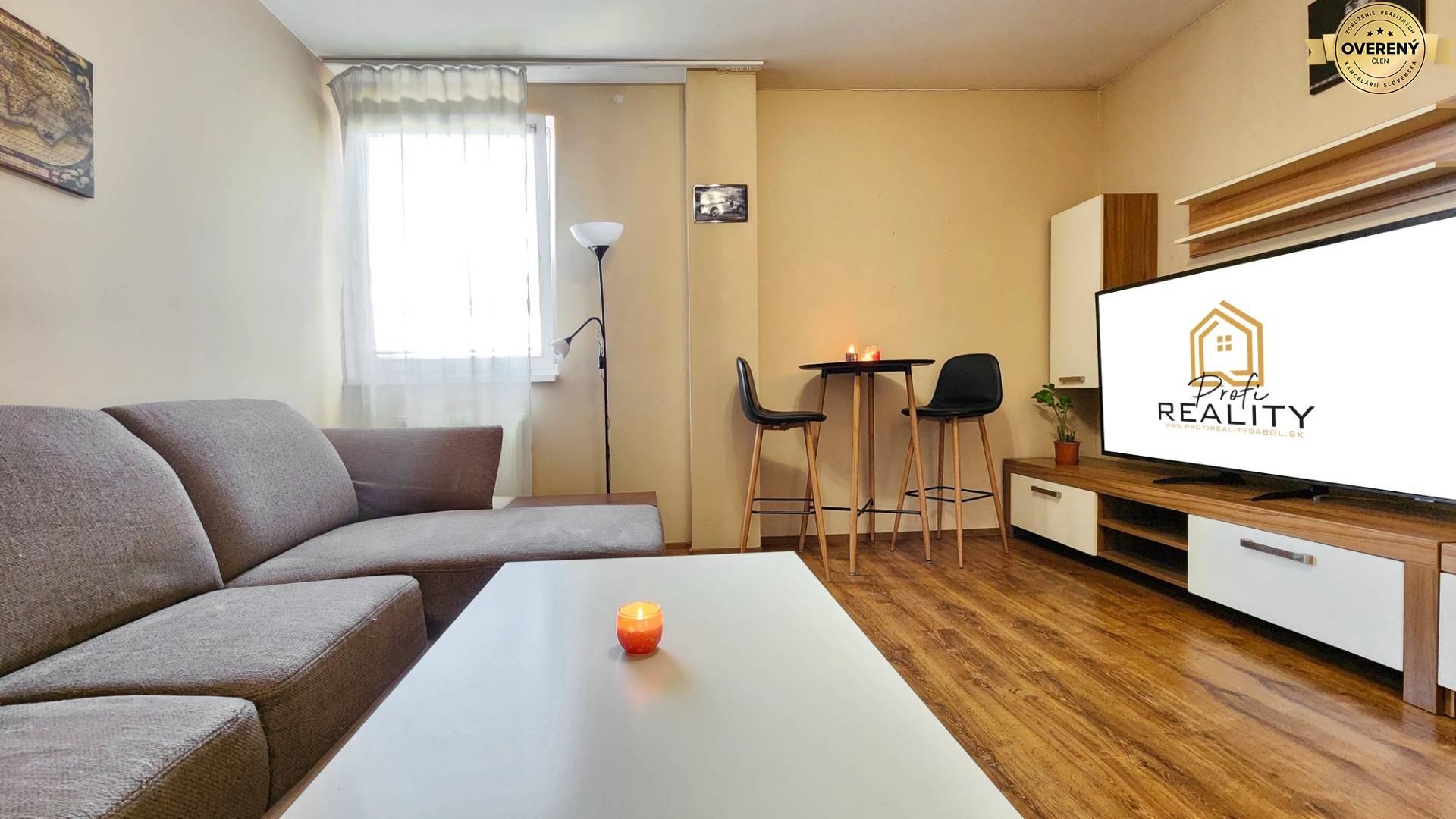 Priestor bytu ponúka samostatnú spálňu, obývaciu izbu spojenú s kuchyňou so vstavanými spotrebičmi / umývačka riadu, mikrovlnka, varná doska, rúra/, a WC spojené s kúpeľňou. Byt je po kompletnej rekonštrukcii. Náklady sú 85 € / 2 osoby /50€ bytovné družstvo, zvyyšok elektrina a plyn/.