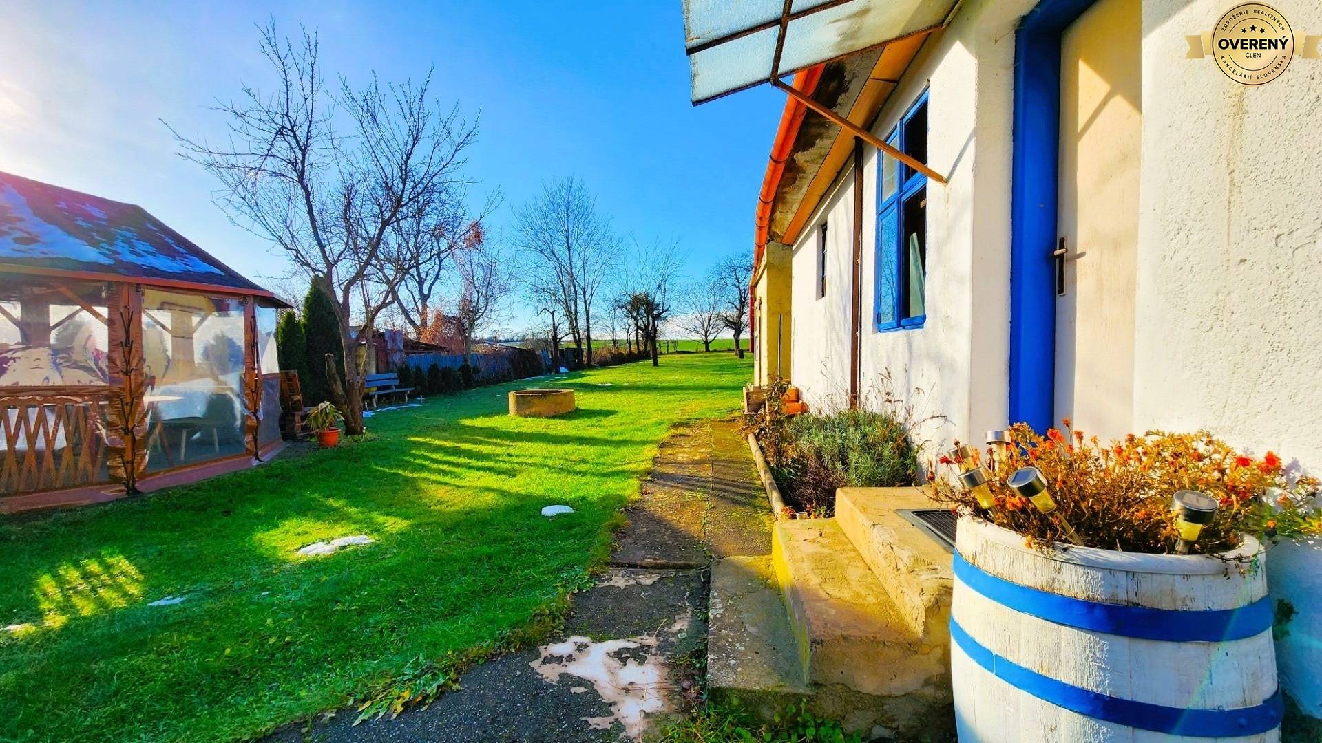 Intravilán obce, veľkorysý, rovinatý pozemok až 1430 m² (šírka 15 m), vlastná studňa, krásna maľovaná letná kuchyňa, dostupné všetky inžinierske siete (E, P, V, K, Int., obecná cesta) a kvalitná občianska vybavenosť (potraviny, pošta, knižnica, SAD, ŽSR ...) splnia aj tie najvyššie požiadavky komfortného bývania pre Vašu rodinu.