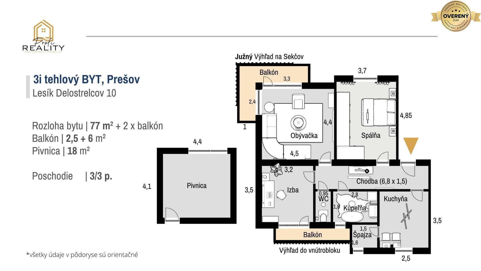 Centrum Prešova, tehlový, kompletne zrekonštruovaný bytový dom a v ňom na 3. poschodí skvost v podobe obrovského 3 izbového bytu s vysokými stropmi, 2 balkónmi a parádnym výhľadom.