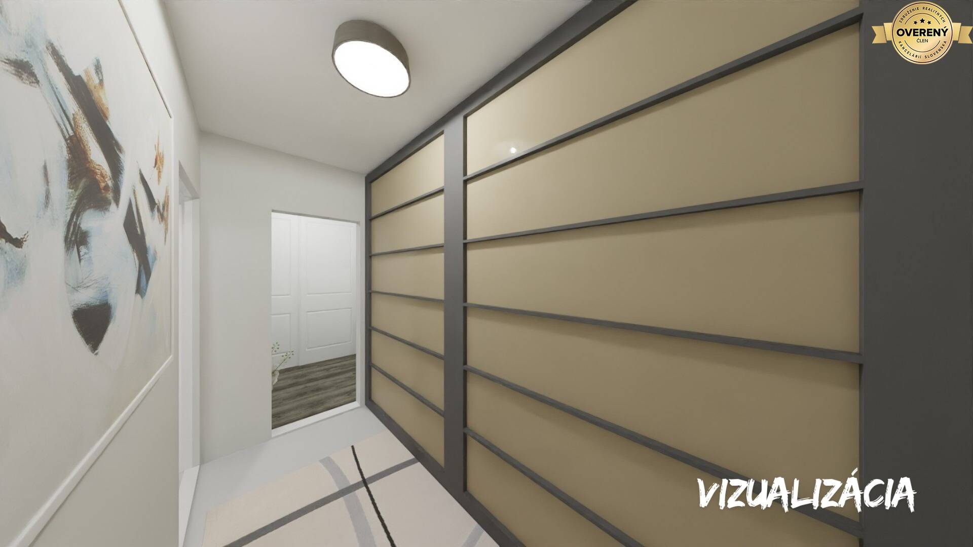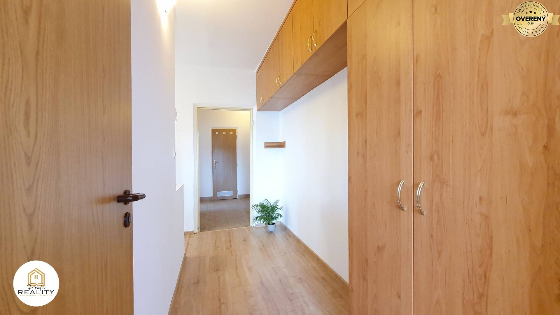 - Byt pozostáva zo vstupnej chodby so šatníkom, obývačky, 2 samostatných izieb (nepriechodne), priestrannej kuchyne s miestom pre veľký jedálensky stôl (aj 6 osôb), samostatného WC, kúpeľne s vaňou, chodby so vstavanou skriňou a je po čerstvom hygienickom nátere. V byte zostáva minimálny nábytok, teda dostatok miesta pre Váš vlastný