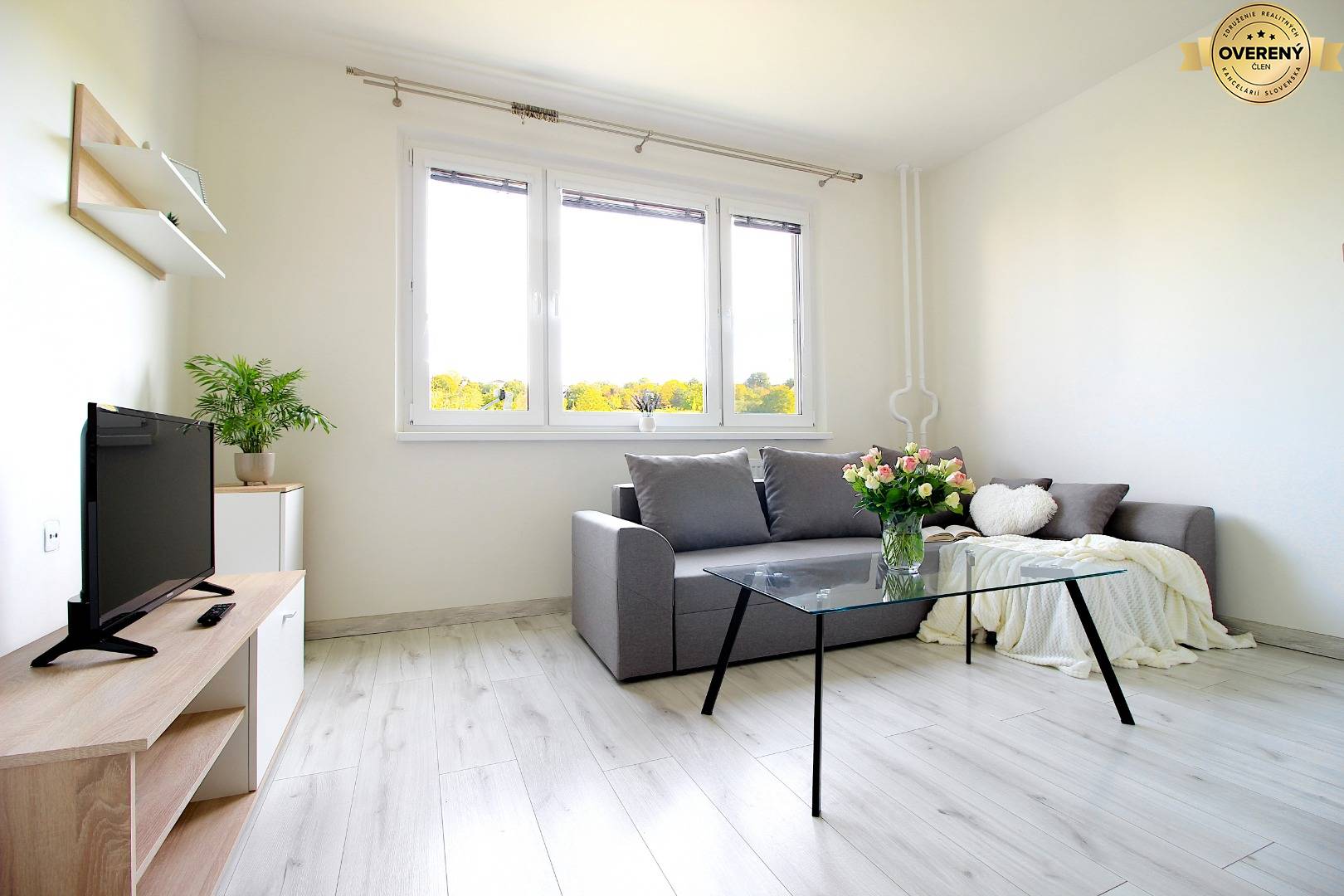 Máme pre Vás riešenie. Kompletne zariadený, 2 izbový byt po kompletnej rekonštrukcii v poslednom rade bytových domov na ulici Ďumbierskej 14 na Sekčove s výhľadom na zeleň.
