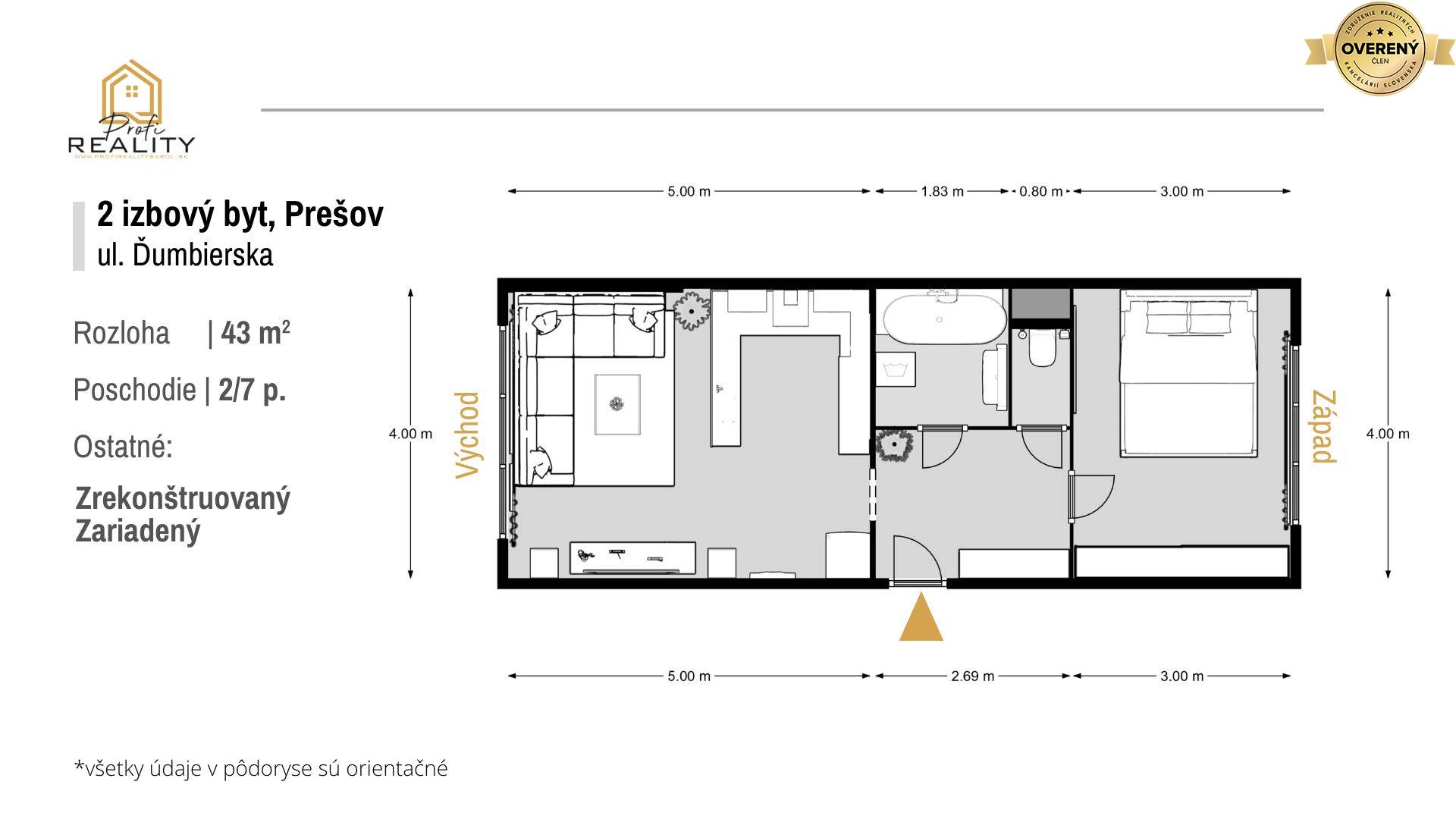 - Veľmi príjemne a KOMPLETNE, NOVO ZREKONŠTRUOVANÝ 2 izbový byt o rozlohe 43 m² so samostatnou spálňou a kuchynským kútom v obývacej izbe s veľmi pekným výhľadom na zeleň. Byt sa nachádza na 2. poschodí s výťahom v zrekonštruovanom bytovom dome.
