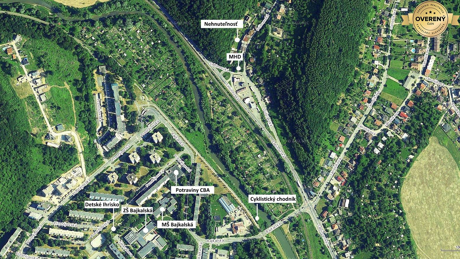 Nehnuteľnosť sa nachádza v tesnom susedstve sídliska III na začiatku Dúbravy, kde v okruhu 10 - 15 minút pešej chôdze nájdete všetko čo patrí ku komfortu nielen vášmu, ale aj vašich detí. Zastávku MHD (100m), CBA potraviny Bajkalská, detské ihrisko + MŠ + ZŠ Bajkalská, cyklistický chodník a mnoho ďalšieho.