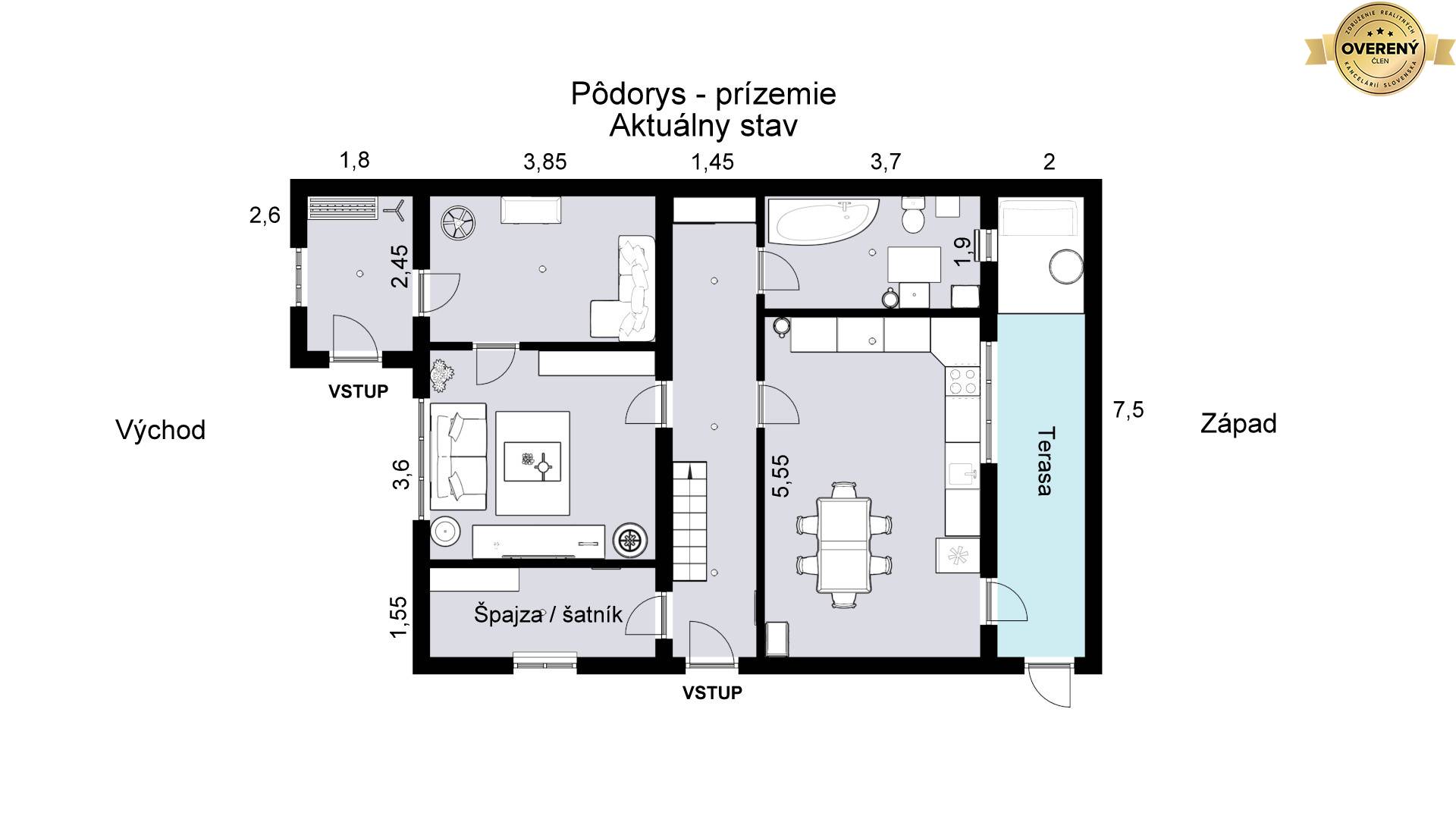 - Rovnako interiér domu prešiel kompletnou rekonštrukciou a je pripravený na okamžité bývanie.