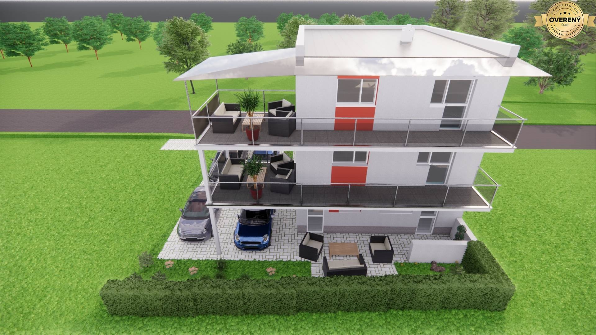 - Bývanie v dome s vlastným parkovaním, mimo mestského ruchu, no v blízkosti kompletnej občianskej vybavenosti a bez starostí o pozemok