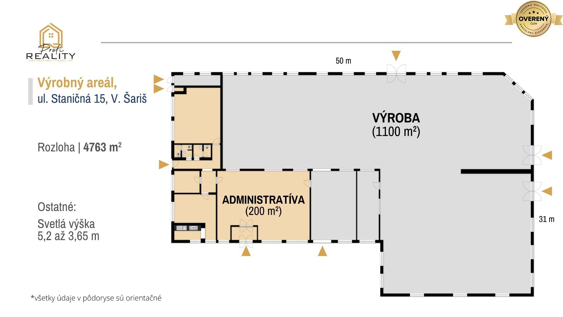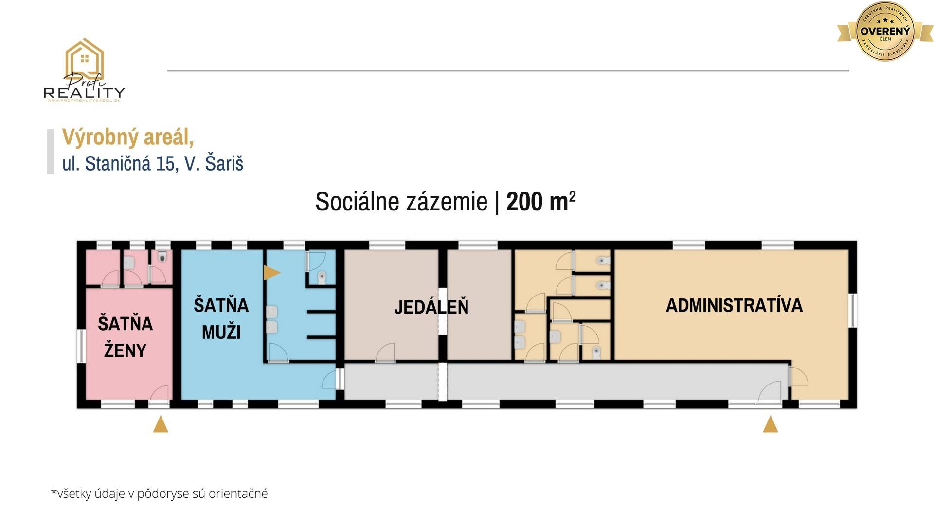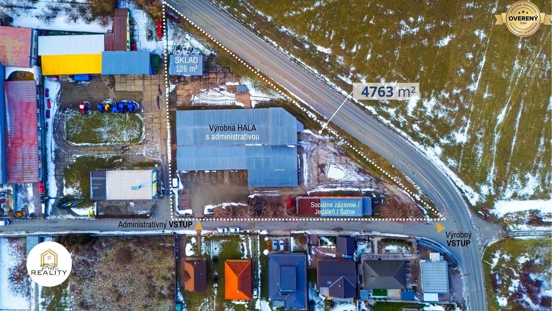 • Jedná sa o výrobný objekt o celkovej úžitkovej ploche 1605 m² (1287 m² výrobná hala s administratívnym vstavkom + 192 m² šatne s administratívou + 126 m² plechový sklad) na pozemku o celkovej výmere 4763 m² v územnom pláne je definovaný ako PLOCHY VÝROBY, SKLADOV / TECHNICKÉHO VYBAVENIA